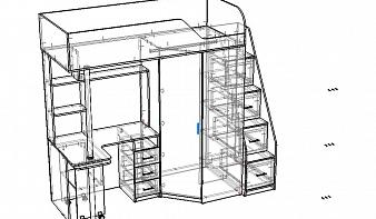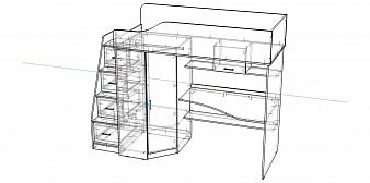 Кровать-чердак со столом и шкафом Дропс-2 BMS