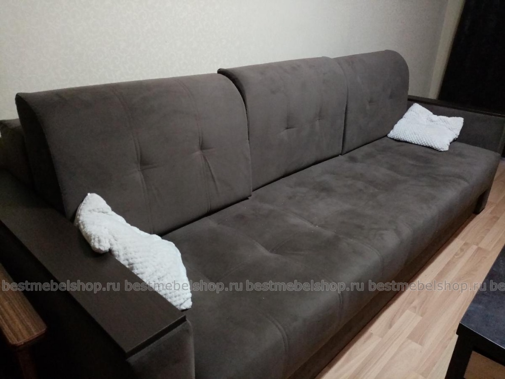 Диван очень удобный! Широкий! Переставляю подушки на бортик и нет необходимости раскрывать диван. Спальное место получается достаточным. Обивку поменяли специально для наших кошек на флок. Цвет замечательный. Привезли вовремя и собрали моментально. Всем довольны.