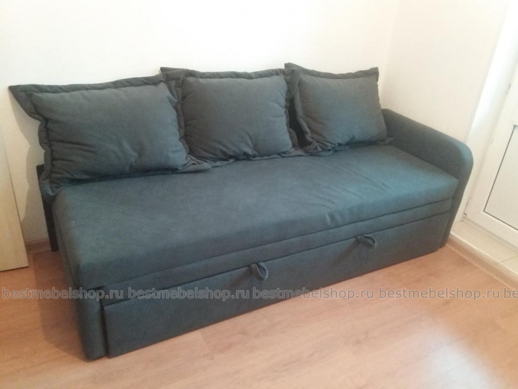 Диванчик понравился. Он-то что мы искали. Компактный и функцианальный. Материал добротный. К качеству и доставке нареканий нет. Спасибо.