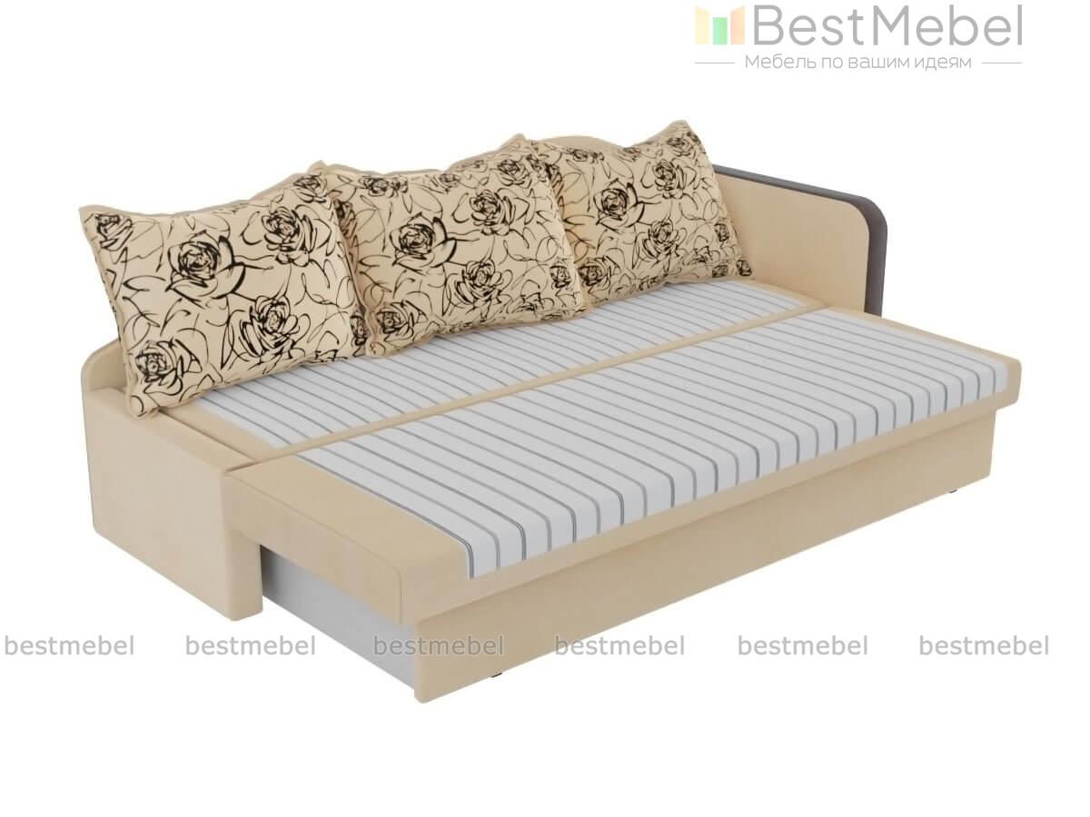Диван-кушетка Верди BMS - очень продуманный предмет мебели. Такой диван занимает немного места, имеет один подлокотник и фигурную спинку. Даже без подушек диван выглядит неординарно и эффектно. В собранном виде кушетка выглядит компактно и сдержано. Для трансформации применен классический механизм «Выкатной». Нижний ящик выдвигается, образуя симметричную поверхность. Матрас, имеющийся на кушетке в сложенном виде, раскладывается. Получается поверхность без стыков и волн. Спальное место соответствует полуторной кровати. Такой диван-кушетку можно приобретать для комнаты подростка, гостиной и даже кухни, если позволяет ее площадь. Заказать диван-кушетку Верди в нашем интернет-магазине можно по привлекательной цене.