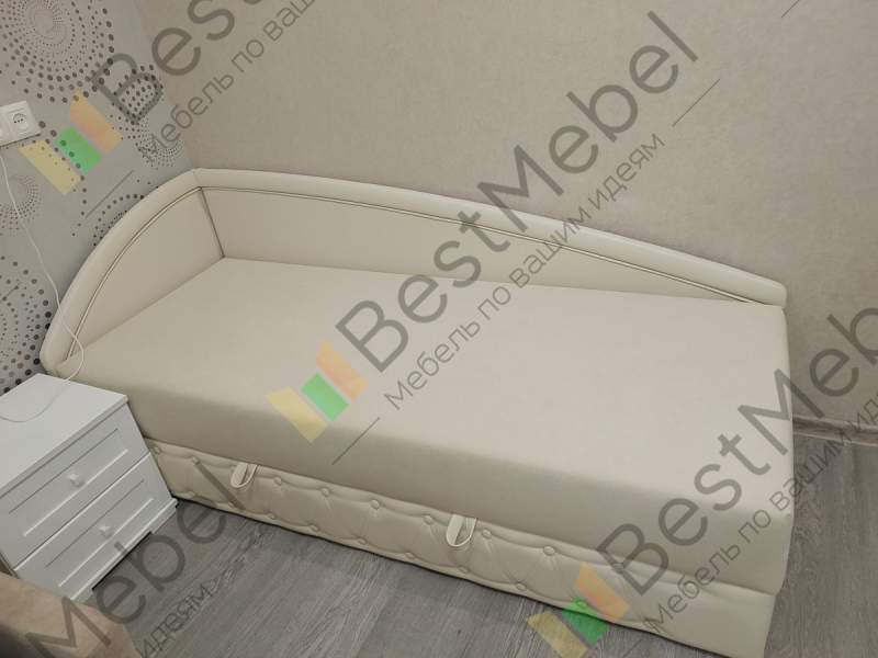 Отличная тахта, выполненна качественно. С подьемным механизмом. Низ и боковины выполненны из эко кожи, матрас велюр.