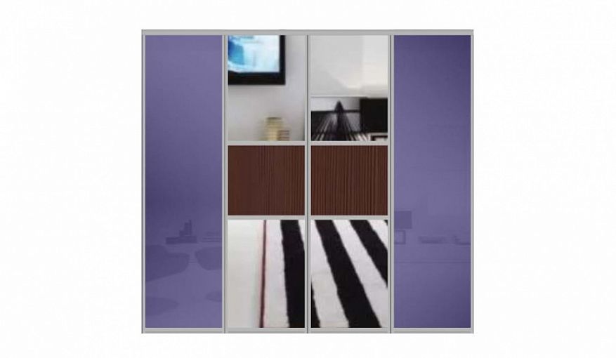Двери-купе Флинт 1 BMS гармонично впишутся в современные интерьеры и превратят удобную систему хранения в элемент дизайна. В оформлении четырехдверного фасада скомбинированы две створки в цветной пленке Оракал и две комбинированные с зеркалами и ЛДСП темных древесных тонов. Двери в рамах из профиля легко монтируются, комфортны в эксплуатации и долговечны. Купить двери-купе Флинт 1 BMS по выгодной цене вы сможете в нашем интернет-магазине.