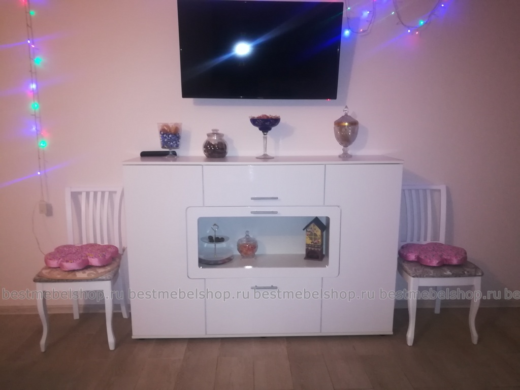 № заказа 367260 Комод 3-х дверный 2 ящика Corano BMS (1600х1100х420) 367260 Комод 3-х Долго с женой выбирали комод, что бы радовал глаз и совпадал с нашим кухонным гарнитуром, в интернете увидели, понравился. Вначале было недоверие к заказу из интернета, решили рискнуть и не пожалели. Оформили заказ быстро с сайта. Оперативно с нами связались, уточнили все пункты заказа, подробно разъяснили все вопросы. Оказалось что данная модель изготавливается впервые, эксклюзив так сказать для нас. Через неделю перезвонили, еще раз уточнили адрес доставки и отправили курьерской службой. Все получил быстро. При сборке вопросов особых не возникло, если есть голова и руки, то по приложенной инструкции все собирается, ни каких допилов и доделок не требуется, всех шурупов/крепежей хватило с избытком. В поставке не доложили микролифт для дверцы, отдел по претензиям все выслушали, извинились и за их счет выслали еще раз курьером. Есть пожелание, стекло делать матовым или придумать как закрыть фальш панелью петли на дверце со стеклом, так как их видно и немного портит вид (на фото видно). Так что мы остались очень довольны, спасибо за проделанную работу и чуткое отношение.