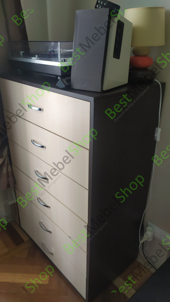 Замечательный комод. Вместительный. Очень нравиться то, что можно заказать мебель по своим размерам и выбрать цвет. Покупкой остались очень довольны. Сроки доставки не нарушены. Качество материала хорошее, без посторонних запахов. Муж собрал комод сам за короткое время. Схема сборки понятна.