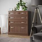 Стильный и лаконичный дизайн комода Браво-3 не оставит равнодушным тех, кто любит классический стиль. Такая модель прекрасно впишется в Вашу гостиную или спальню и не займет много места. Вместительные ящики позволяют хранить нижнее белье и постельные принадлежности. В верхней части комода находятся два небольших ящичка, в которые можно сложить Ваши аксессуары. Если Вам понравилась данная модель, Вы можете недорого заказать ее в нашем интернет-магазине.