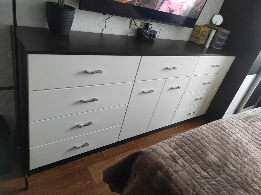 Отличный комод, удобно, что можно скорректировать свои размеры, этот глубиной 30 см.Привезли всё вовремя, при наличии одной бракованной детали, быстро сделали замену.