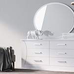 Комод Эльза 6 BMS дополнит элегантный спальный гарнитур с элементами стиля модерн. Белоснежная глянцевая модель привлекает внимание оригинальной формой фасада, а комбинированная конструкция позволит вам максимально выгодно использовать пространство. Комод оборудован шестью выдвижными ящиками для хранения постельного белья и средств по уходу, широкой столешницей, на которой смогут разместиться мелкие вещи, и панелью с круглым зеркалом. Купить комод Эльза 6 BMS приглашаем в наш интернет-магазин по лучшей цене.