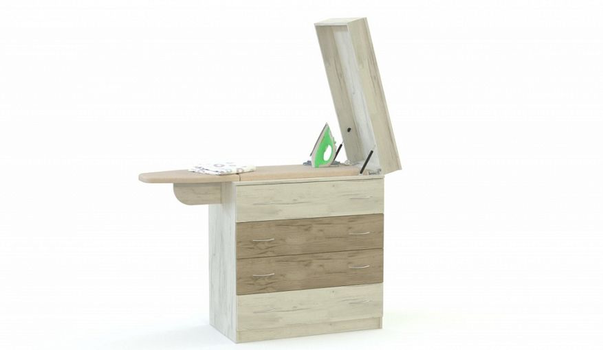 Комод Этель-5 BMS может использоваться для хранения вещей или глажки, легко трансформируясь в гладильную доску. Многофункциональный комод отличается компактными в сложенном виде размерами и выполнен в натуральных крафтовых оттенках, прекрасно вписываясь в интерьер небольшой современной квартиры или студии. Модель оборудована четырьмя выдвижными ящиками, скрытой под откидной столешницей рабочей поверхностью и складной боковой секцией. Купить комод Этель-5 BMS приглашаем недорого в наш интернет-магазин.