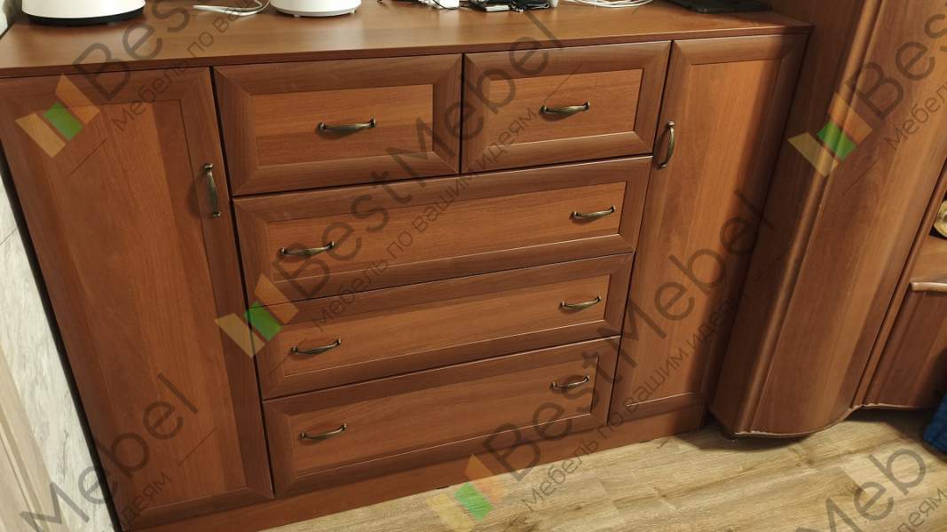 Комод Иван 2.4,2 ящика BMS. Заказ № 00000295853. Размер нестандартный 1600х1200х500.Удобный интерфейс для заказа, большой выбор фурнитуры, материалов и цветов.Запросил эскиз комода, для понимания глубины ящиков, направили в тот же день, что очень помогло.Высокое качество материалов, не жалею, что выбрал достаточно дорогие направляющие для выдвижных ящиков- работают легко, без шума и перекосов, то же по петлям дверей.Привезли вовремя, сборщик работал достаточно долго, но качественно.По результатам эксплуатации в течение 2-х месяцев недостатков нет.Покупкой и магазином очень доволен.Рекомендую!