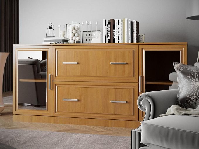 Оригинальная модель современного комода, который совмещает в себе функции места для хранения домашних вещей и книжного шкафа. Для размещения постельных принадлежностей предусмотрены два просторных ящика, а по бокам два больших распашных отделения с полками для книг, дисков, косметики и т.д. Комод Карлос-039 BMS изготовлен из качественных материалов с использованием стильной фурнитуры. Купить такую модель можно для большой спальни, гостиной или квартиры-студии.