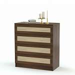 Комод Кэтти BMS дополнит интерьер спальни, гостиной или прихожей и поможет легко поддерживать порядок в вещах. Модель удобных средних габаритов оборудована четырьмя выдвижными ящиками для хранения постельного белья, одежды и бытовых мелочей, а также просторной столешницей, на которой разместятся декоративные предметы. Рамочные фасады комода выполнены в контрастных древесных тонах и дополнены двумя рядами ручек-рейлингов. Купить комод Кэтти BMS вы сможете в нашем интернет-магазине с выбором цвета и фурнитуры.