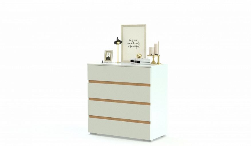 Комод Лина 5 BMS с белыми гладкими фасадами без лицевой фурнитуры и вставками золотого крафта поможет создать яркий современный интерьер. Минималистичная модель, выполненная в белом цвете, оборудована четырьмя выдвижными ящиками, в которых компактно разместятся всевозможные бытовые вещи, одежда и домашний текстиль. Благодаря использованию износостойких материалов и надежной фурнитуры комод прослужит долго, не теряя эстетичного внешнего вида. Купить комод Лина 5 BMS приглашаем к нам в интернет-магазин.