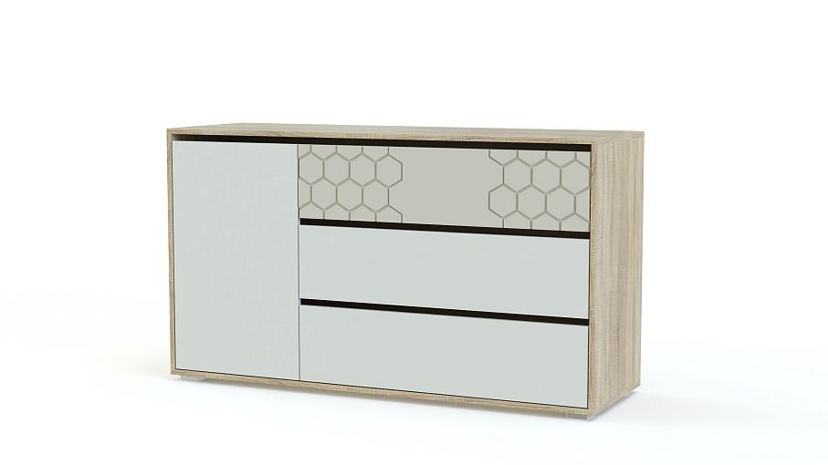 Комод с дверкой и тремя ящиками Мальта BMS порадует поклонников минимализма лаконичной формой, отличной вместительностью и современным дизайном. Комбинированная модель оборудована не только тремя выдвижными ящиками, но и распашным отделением с полками и сможет аккуратно разместить разнообразные бытовые мелочи. Особенно удобным пользование сделает эргономичная система открывания нажатием на фасад. Цветовое решение – оттенки под массив дуба и белый, верхний ящик декорирован фрезерованным рисунком. Купить комод с дверкой и тремя ящиками Мальта BMS приглашаем в наш интернет-магазин.