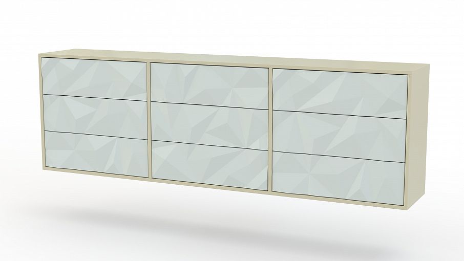 Комод Тамариск 14 BMS оборудован девятью выдвижными ящиками, расположенными в три ряда. Изящный удлиненный комод станет местом хранения большого количества вещей и прекрасным вариантом для обустройства макияжной или телевизионной зоны. Подвесная конструкция выглядит воздушной благодаря светлому оформлению и отражающему солнечные лучи 3D фасаду. Купить комод Тамариск 14 BMS с возможностью выбора цвета и размеров приглашаем в наш интернет-магазин.