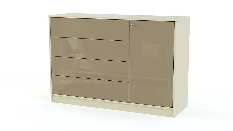 Комод Триша 1.4 BMS – это современная модель с яркими глянцевыми фасадами для интерьера спальни, гостиной или детской комнаты. Эффектный и практичный, комбинированный комод оборудован широкой столешницей, распашным отделением с полкой и рядом из четырех вместительных выдвижных ящиков без ручек для белья и одежды. Лаконичный по форме, комод отличается широким выбором цветовых решений. Купить комод Триша 1.4 BMS, подобрав оптимальную расцветку, приглашаем в наш интернет-магазин.