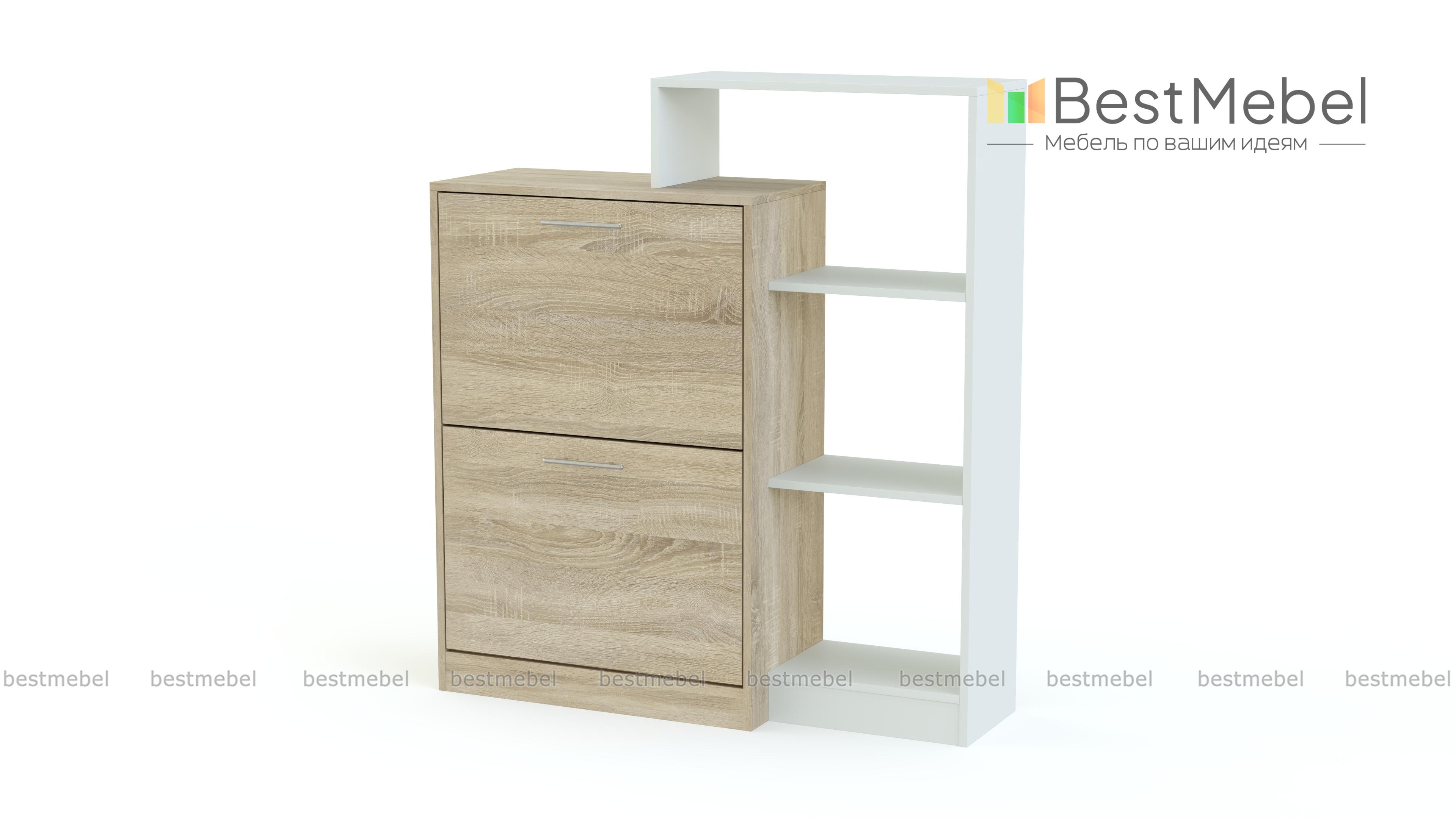 Обувница Лаф 4 BMS – практичная система хранения и оригинальный интерьерный акцент. Комбинированная модель объединила тумбу с двумя откидными обувными лотками и мини-стеллаж с открытыми полками, на которых будут всегда под рукой принадлежности по уходу, аксессуары и разнообразные бытовые мелочи. Визуальную легкость разноуровневой конструкции придает контрастное цветовое решение. Купить обувницу Лаф 4 BMS и обустроить стильную и комфортную входную зону вам поможет наш интернет-магазин.