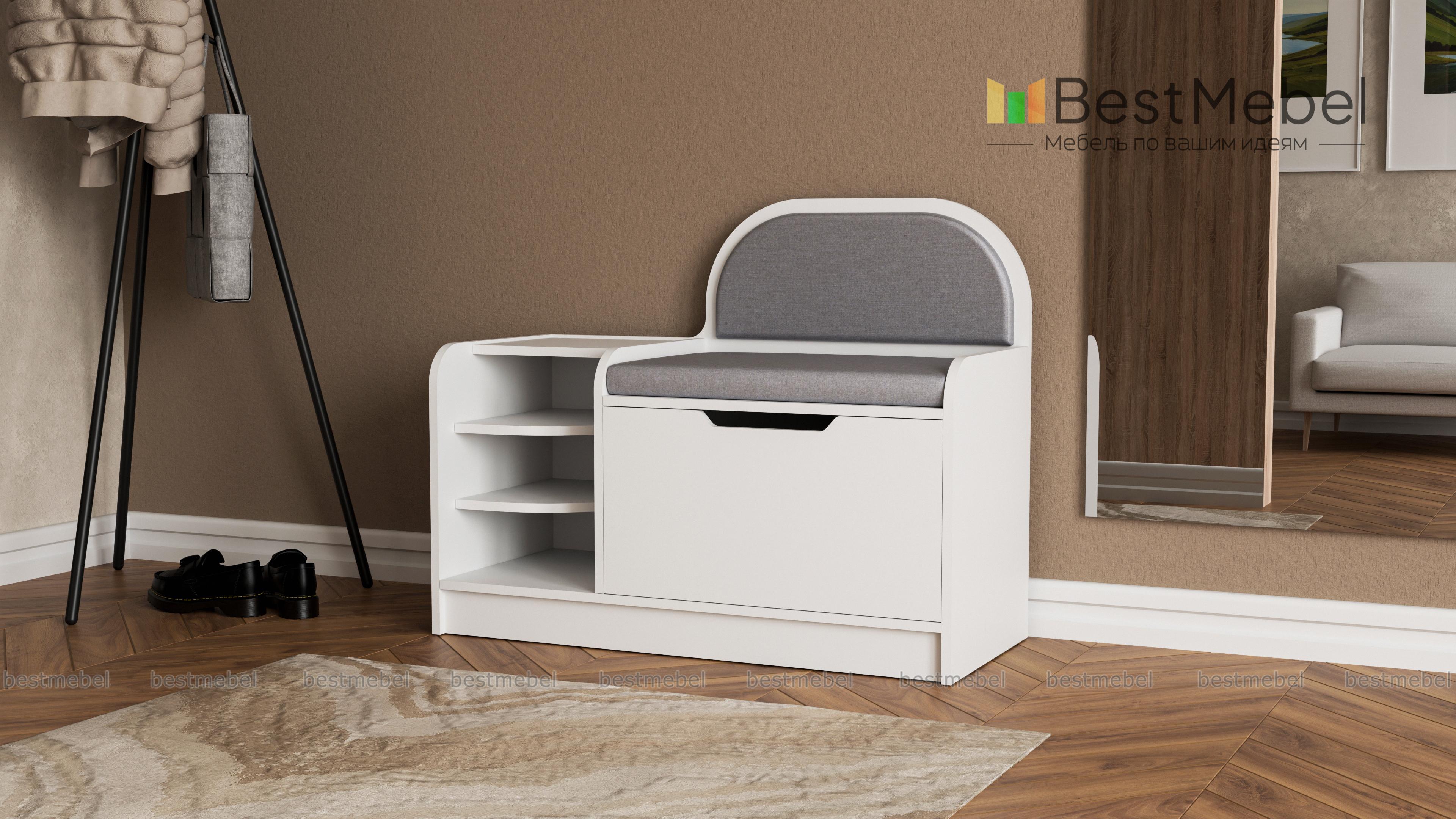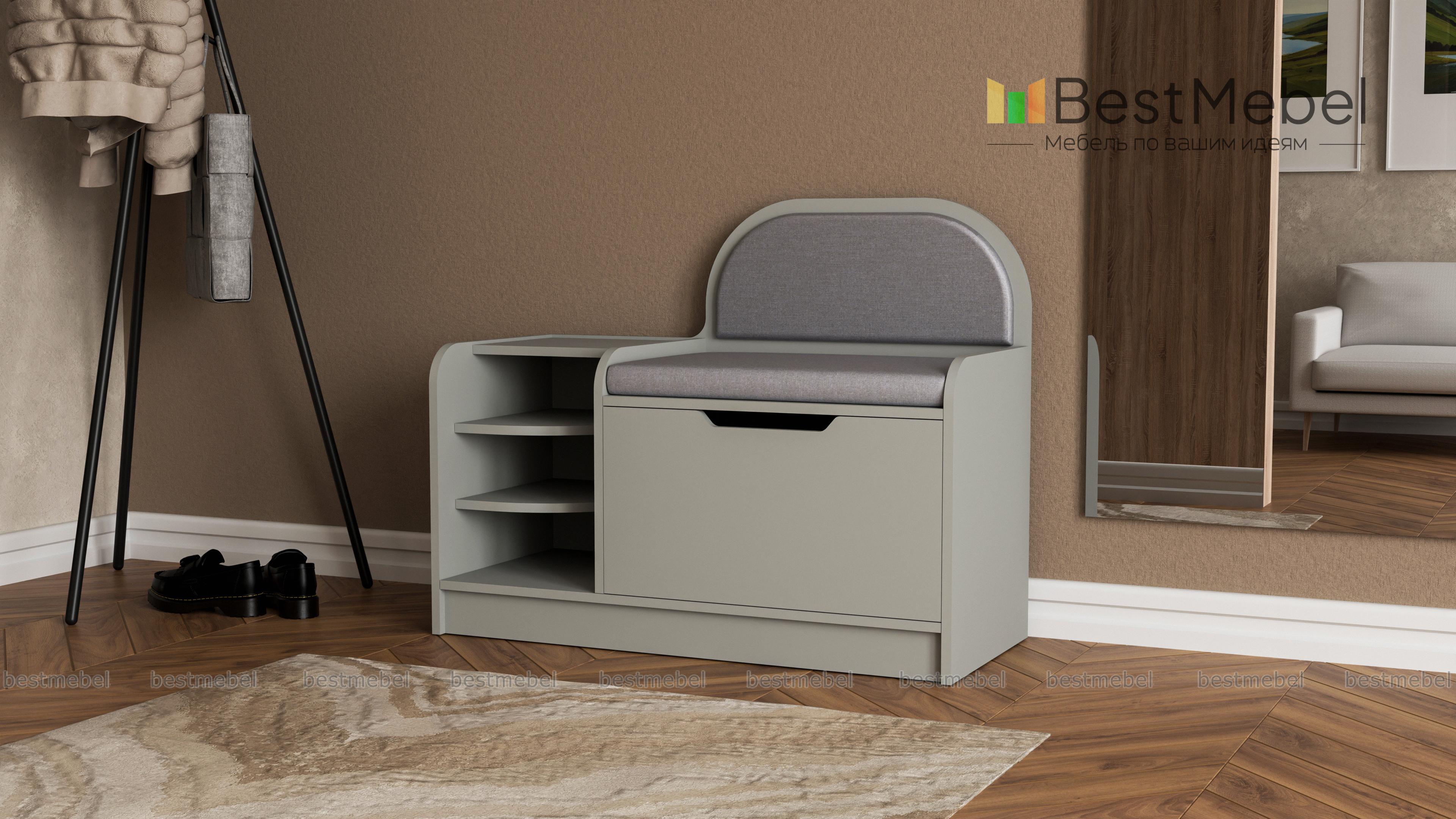 Обувница Лидер 4 BMS поможет вам обустроить комфортную входную зону. Комбинированная модель оборудована вместительным откидным отделением для обуви с ручкой-вырезом и открытыми полками, а также сиденьем с высокой спинкой. Углы обувницы безопасно скруглены, что немаловажно для небольших помещений. Нейтральные серо-бежевые тона корпуса и мягкой обивки гармонично впишутся в современные интерьеры. Купить обувницу Лидер 4 BMS приглашаем в наш интернет-магазин по выгодной цене.
