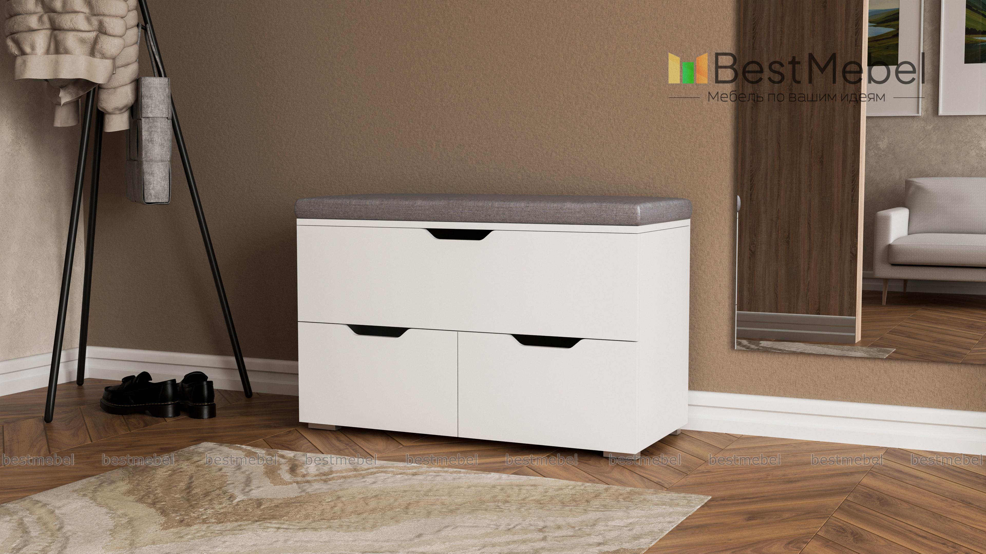 Обувница Мастер BMS поможет сэкономить полезную площадь небольшой прихожей, объединив функции системы хранения и банкетки. Практичная модель оборудована комфортным сиденьем с мягкой тканевой обивкой, одним широким и двумя малыми выдвижными ящиками с ручками-вырезами для обуви и уходовых средств. Обувница выполнена в натуральных оттенках под древесный массив и легко впишется в большинство современных интерьеров. Купить обувницу Мастер BMS приглашаем в наш интернет-магазин по приятной цене.