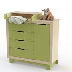 Пеленальный комод Ирис 14 BMS оснащен складным съемным столиком, который можно просто снять, когда малыш подрастет. Свободное пространство рядом с пеленальной доской позволяет разместить под рукой необходимые уходовые средства. Модель яркого современного дизайна с устойчивыми ножками оборудована четырьмя выдвижными ящиками и распашным отделением с удобными и безопасными для ребенка вырезными ручками. Купить пеленальный комод Ирис 14 BMS вы сможете в нашем интернет-магазине, подобрав цветовое решение.