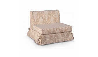 Изящное кресло-кровать Толедо BMS будет эффектно смотреться в классическом интерьере. Роскошная обивка с орнаментом, декоративная рюша и симпатичные бантики дополнены комфортной и мягкой подушкой сиденья, подлокотники отсутствуют. В полноценную кровать компактное кресло превратится при помощи простого современного механизма трансформации. Высокое качество материалов и надежная конструкция обеспечат этой модели долговечность и привлекательный внешний вид.