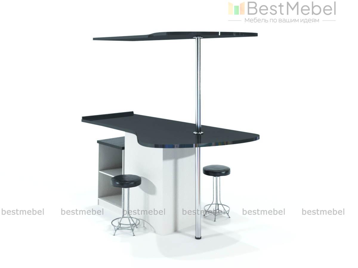 Барная стойка Деми-3 BMS дополнит интерьер просторной кухни или студии. Черная глянцевая столешница эффектной обтекаемой формы повторяет линии навесной верхней панели. Устойчивость конструкции обеспечит хромированная опора, для размещения напитков, бокалов и прочих барных атрибутов предусмотрен стеллаж. Надолго сохранить эстетичный вид стойке помогут устойчивые к влаге и выгоранию материалы. Купить барную стойку Деми-3 BMS приглашаем в наш интернет-магазин.