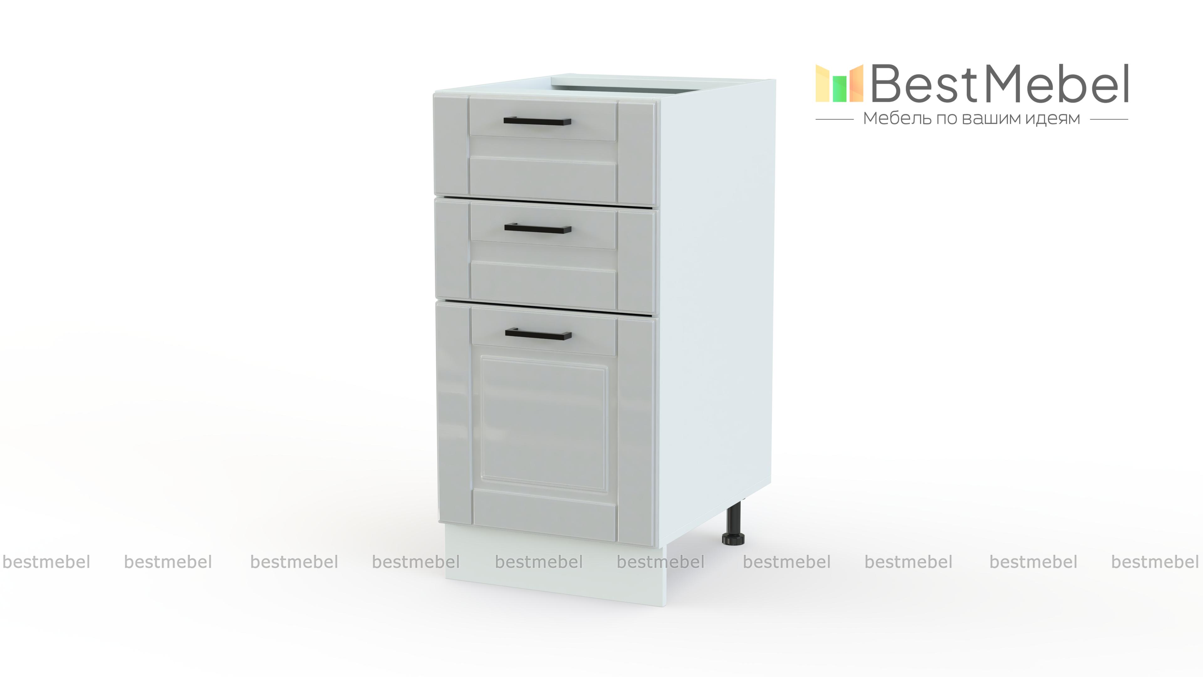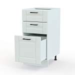 Шкаф нижний 3 ящика Парма BMS сократит время на поиски мелочей, позволяя компактно их разместить: столовые приборы, салфетки и многое другое будут всегда под рукой. Два малых выдвижных ящика кухонного шкафа дополнены одним большим, расположенным в основании. На светлые фасады с декоративной рамкой установлены удобные в повседневной эксплуатации и стильные ручки-скобы. Купить шкаф нижний 3 ящика Парма BMS вы сможете недорого в нашем интернет-магазине, по желанию изменив цвет и размеры.