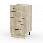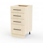 Шкаф нижний 4 ящика Лайт BMS незаменим для хранения столовых приборов и всевозможных кухонных аксессуаров. Три малых выдвижных ящика и один большой позволят вам разместить мелочи и более габаритные предметы. На лаконичные светлые фасады ящиков установлены удлиненные ручки-скобы, опоры с регулировкой высоты закрывает цоколь в тон корпусу. Купить шкаф нижний 4 ящика Лайт BMS вы сможете на сайте нашего интернет-магазина, подобрав оптимальные размеры и цвет по каталогу.