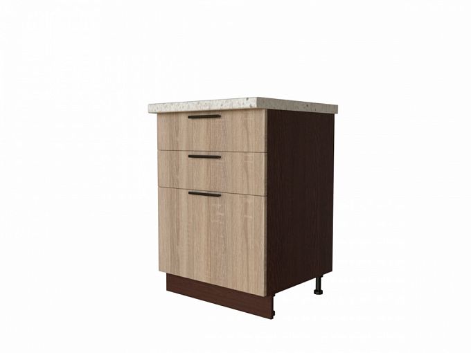 Шкаф нижний с 3-мя ящиками Брауни BMS отличается простотой конструкции, современным дизайном и доступной ценой. Шкаф органично дополнит другие предметы серии и позволит разместить как мелочи, так и крупные предметы благодаря трем выдвижным ящикам разной высоты. Строгие фасады практичной расцветки под массив дерева просты в уходе и создают в помещении уютную домашнюю атмосферу. Купить шкаф нижний с 3-мя ящиками Брауни BMS недорого приглашаем в наш интернет-магазин.