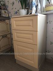 Добрый день! Тумбу заказывали как отдельностоящую, поэтому попросили сделать нижние бортики по всему периметру. Цвет тумбы и высоту тоже в заказе изменили, чтобы подходила под кухонный гарнитур и встала под подоконник. Оператор позвонил, все ещё раз уточнили, посчитали, заказали. Заказ был выполнен и доставлен в оговорённый срок. Качество хорошее, был несильный запах, через пару дней прошёл. Острые уголки закрыли накладками и пока не установили ручки, т к в доме малыш, который везде лезет. Спасибо производителю за возможность заказа по индивидуальным параметрам, т к ни один из предложенных на рынке вариантов нам не подходил.