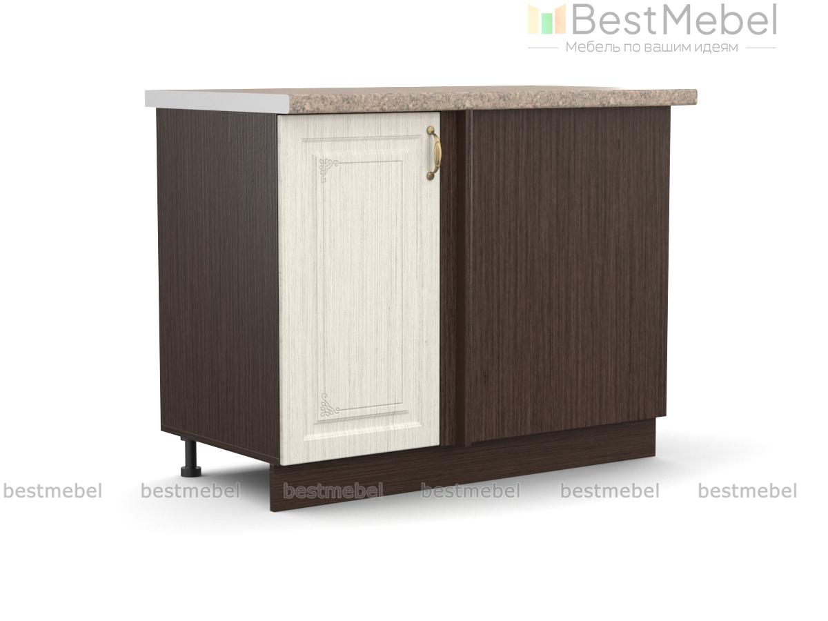 Тумба угловая 990 Виктория BMS необходима для стыковки модулей в гарнитуре Г-образной формы. С фронтальной стороны модель оборудована распашной дверцей и глухой стенкой, устойчивость обеспечивают регулируемые опоры, закрытые цоколем. Просторное внутреннее отделение подойдет для размещения продуктов и габаритных предметов, а удобной рабочей поверхностью станет широкая столешница. Купить тумбу угловую 990 Виктория BMS и дополнить комплект в классическом стиле вам поможет наш интернет-магазин.