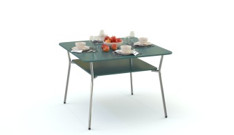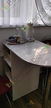 Стол хорошо вписывается в интерьер маленькой кухни.Не занимает много пространства,для удобства сделан складной механизм.Сбоку встроенны удобные полки для хранения.