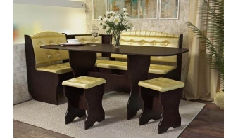 Элегантный комплект в современном стиле Ванкувер 3 Люкс BMS отличается гармоничным сочетанием текстильной обивки натуральных тонов и контрастного темного венге корпуса. Декорированные текстильными планками боковины стола придают уголку особенно стильный вид. В комплект входят угловой диван, обеденный прямоугольный стол и два табурета, средние габариты оптимальны для размещения пяти человек. Благодаря надежности и простоте конструкции уголок прослужит вам долгие годы.