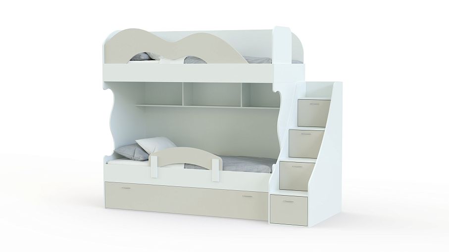 Детская двухъярусная кровать Бамбини BMS сочетает в себе комфорт, уют и безопасность. Спальные места первого и второго яруса оборудованы фигурно вырезанными защитными бортиками и боковинами без острых углов. Дополнительные места для хранения постельных принадлежностей, игрушек и книг создают выкатной ящик в основании, оснащенная под ступеньками ящиками приставная лестница и открытые полки. Купить детскую двухъярусную кровать Бамбини BMS вы сможете в нашем интернет-магазине, подобрав размеры и цветовую гамму.