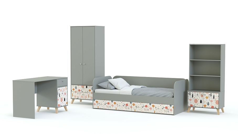 Детская комната Эльза 6 BMS поможет создать красивый и уютный интерьер. В едином стиле выполнены кровать с местом для хранения, письменный стол, комбинированный платяной шкаф с ящиками и стеллаж для хранения книг и игрушек. Мебель имеет легкие за счет высоких ножек силуэты и современный дизайн в нейтральной цветовой гамме с декоративными вставками-фотопечатью. Купить детскую комнату Эльза 6 BMS приглашаем в наш интернет-магазин с изготовлением по индивидуальным размерам.
