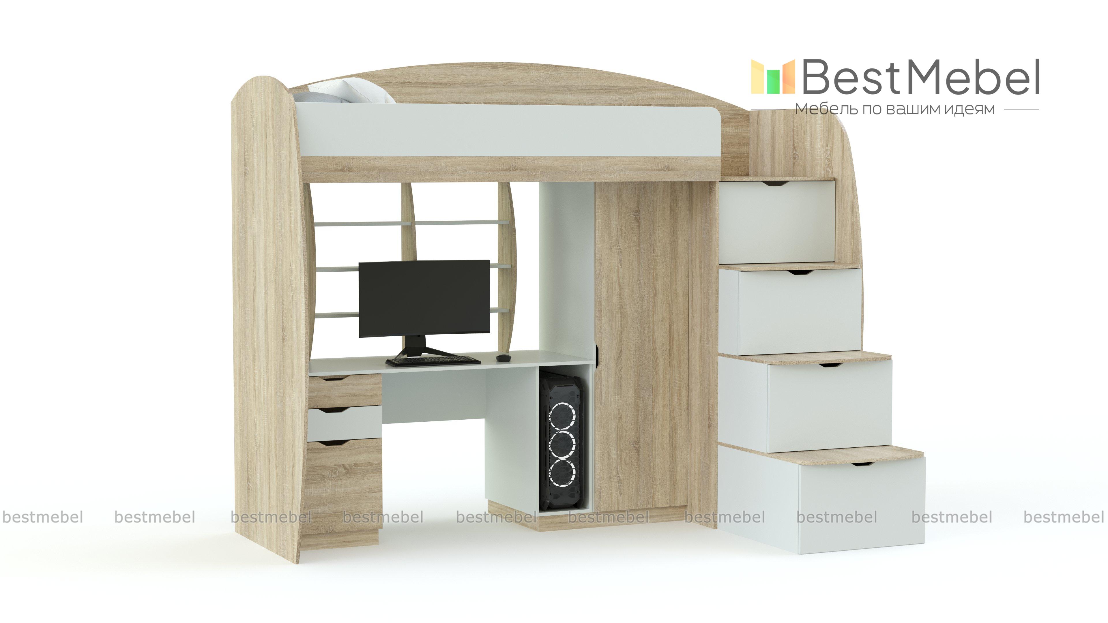 Детская кровать-чердак Дм081 BMS - практичное решение для экономии пространства и комфорта вашего ребенка. Модель с рабочей зоной оборудована компьютерным столом с полками для книг и тетрадей, распашным шкафчиком для одежды и лестницей-стеллажом. Безопасные материалы, нейтральная палитра и объемные скругленные детали сочетаются в яркой современной модели, которая подойдет для комнат мальчиков и девочек. Купить детскую кровать-чердак Дм081 BMS вы сможете в нашем интернет-магазине, подобрав цвета и размеры.