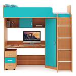 Детская кровать-чердак Дм105 BMS – целая мебельная система! В ней представлены зона отдыха и рабочее место школьника. Постель расположена наверху, для защиты от падения оборудована высокими бортами, спинкой и изголовьем. Туда ведет лестница с хромированными ступенями-трубками. Под основанием размещена столешница, над ней полка, одна закрытая ниша. Стол для учебы оснащен полкой внизу и приставной тумбой на колесах (в ней 3 ящика). Одежду ребенок развесит в однодверном распашном шкафу. Устойчивая модель выполнена из крепкой ЛДСП. Ножки прорезиненные. Цветовая гамма по выбору, привлекательно выглядит комбинация оттенков.