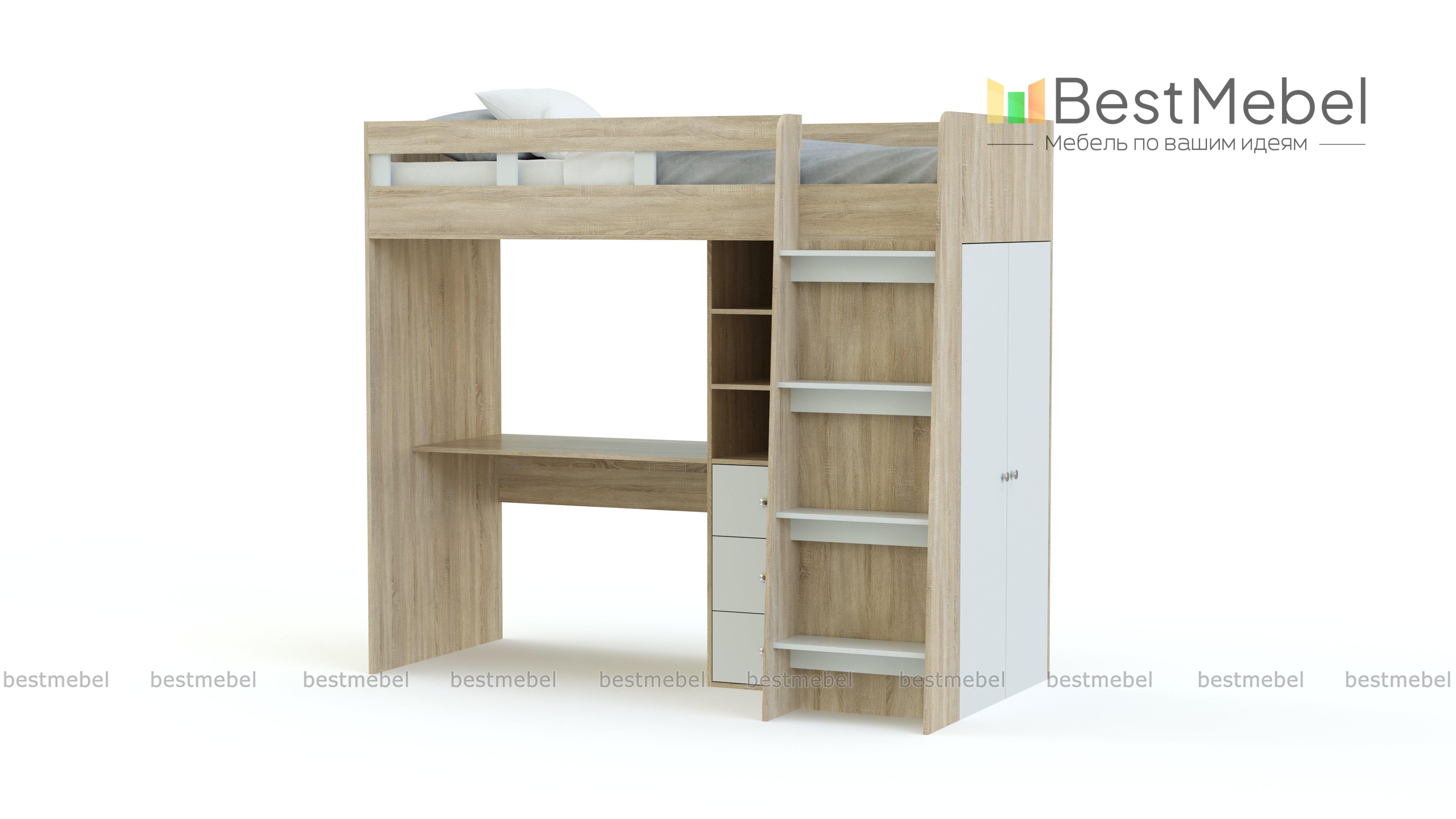 Детская кровать Голда 5 BMS поможет сэкономить полезную площадь комнаты и обеспечит ребенка не только удобным спальным местом, но и пространством для учебы и творческих занятий. На верхнем ярусе располагается кровать-чердак с защитным бортиком, нижняя представляет собой письменный стол, дополненный комбинированным стеллажом. С торца модели находится распашной шкаф для белья и одежды, а безопасность обеспечит устойчивая лестница. Купить детскую кровать Голда 5 BMS, подобрав наиболее подходящее цветовое решение, приглашаем в наш интернет-магазин.