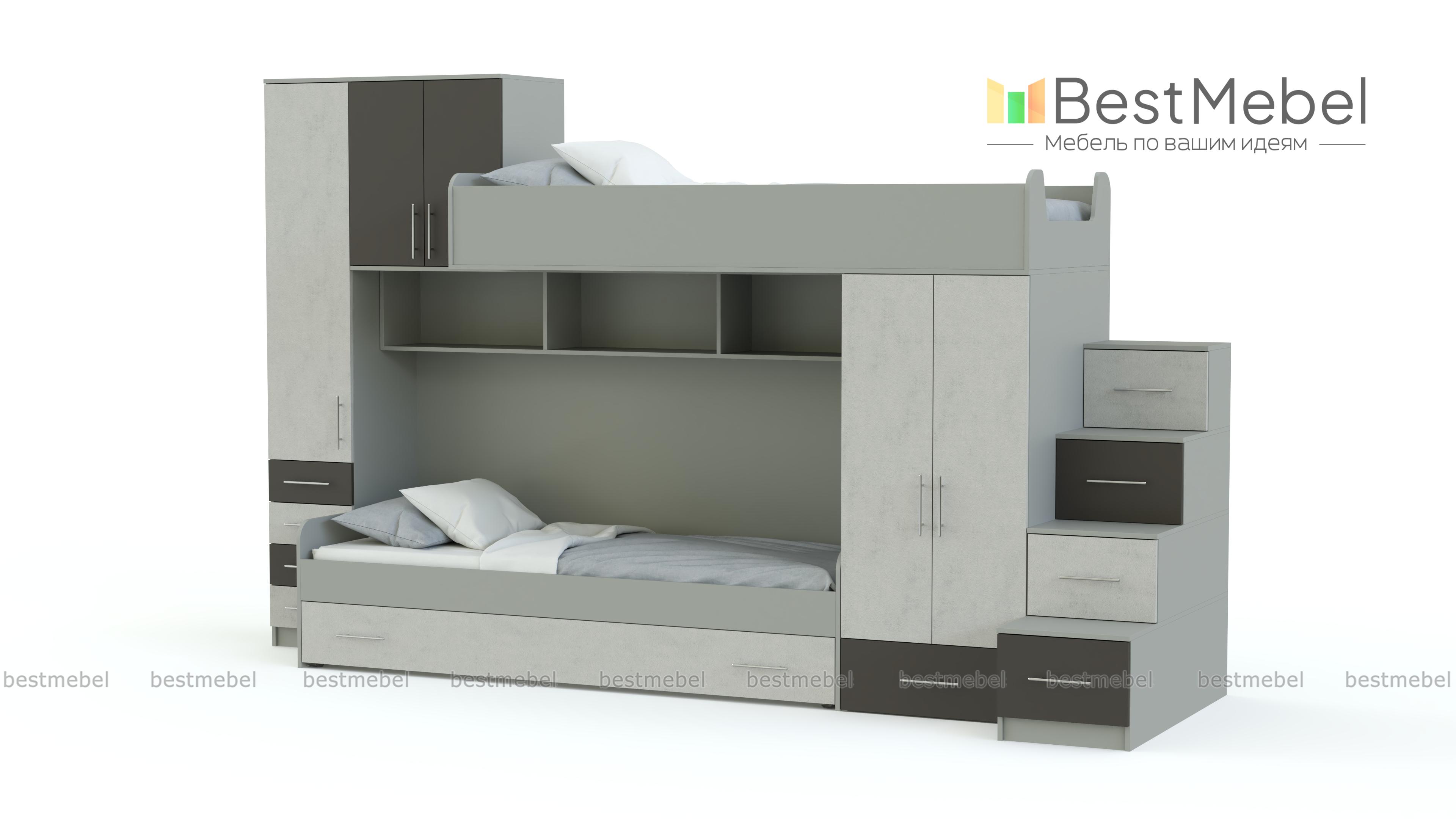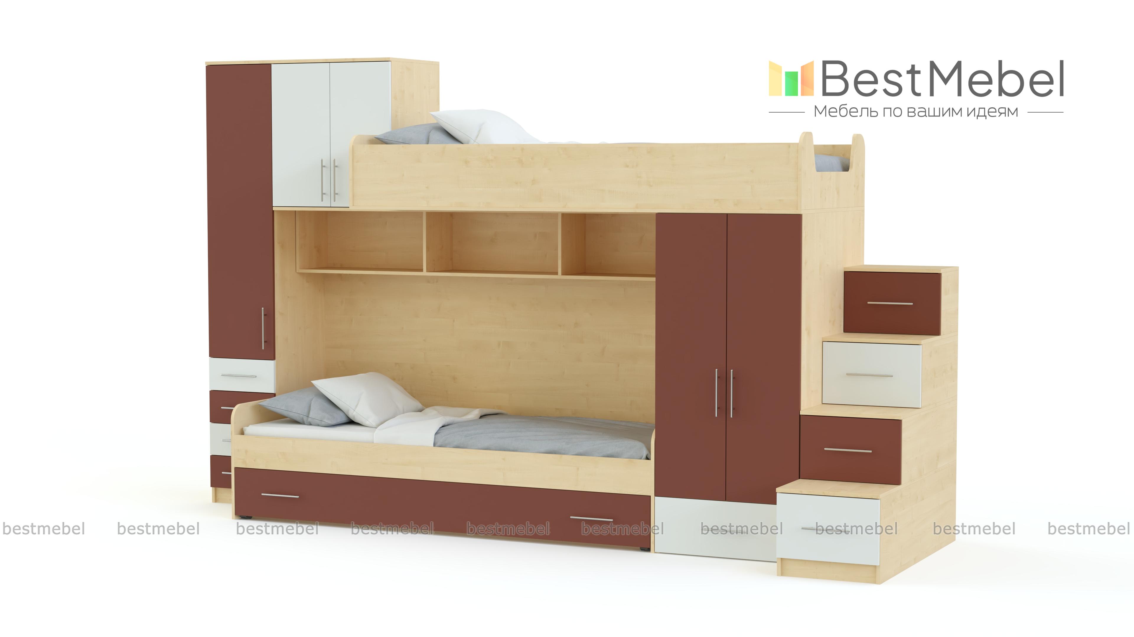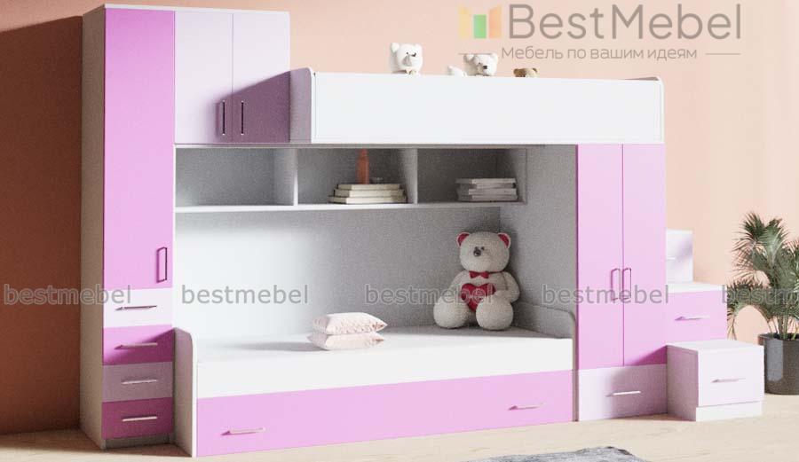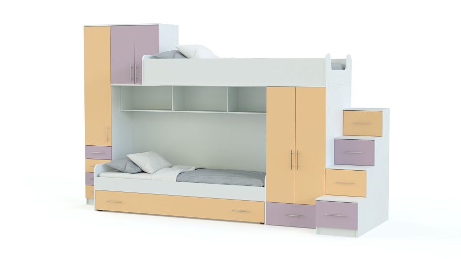 Детская кровать Марта-119 BMS представляет собой яркую разноуровневую композицию, которая непременно понравится детям и сэкономит полезную площадь комнаты для игр. Практичная модель объединила кровать-чердак, классическую кровать с бельевыми ящиками в основании, распашные и выдвижные отделения, книжные полки и удобную лестницу-комод. Продуманная до мелочей конструкция поможет максимально эффективно использовать пространство. Купить детскую кровать Марта-119 BMS приглашаем в наш интернет-магазин.