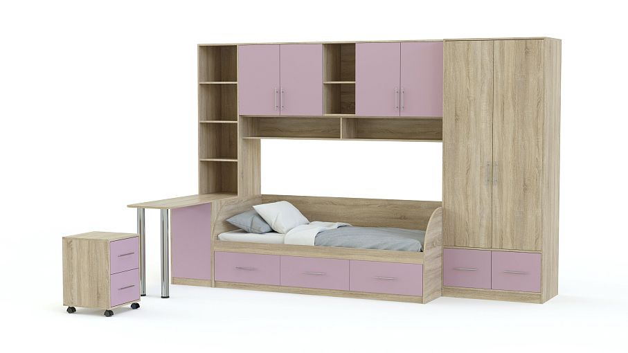 Детская мебель Маркиза 1 BMS придется по душе и детям, и их родителям. Современный комплект выполнен из экологичных материалов и отличается продуманной до мелочей конструкцией. Полноценный сон обеспечит уютная кровать-софа с выдвижными ящиками для белья, для размещения гардероба предусмотрен двухдверный шкаф-купе, а для книг и игрушек – антресольные секции и стеллаж. Встроенный угловой столик дополнят практичная выкатная тумба на колесиках. Купить детскую мебель Маркиза 1 BMS по лучшей цене вы сможете в нашем интернет-магазине.