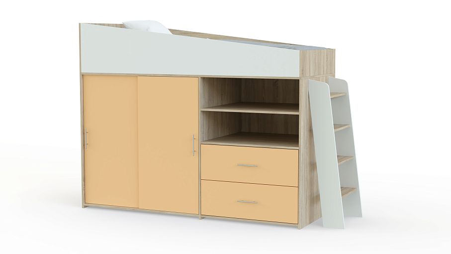 Кровать-чердак Дождик BMS – это надежность, безопасность и высокая функциональность. Модель незаменима в современных малогабаритных квартирах и позволит сэкономить полезную площадь детской комнаты, компактно объединив просторное спальное место с защитными бортиками, шкаф-купе для одежды, открытые полки и вместительные выдвижные ящики для игрушек и постельных принадлежностей. Купить кровать-чердак Дождик BMS по доступной цене приглашаем в наш интернет-магазин.