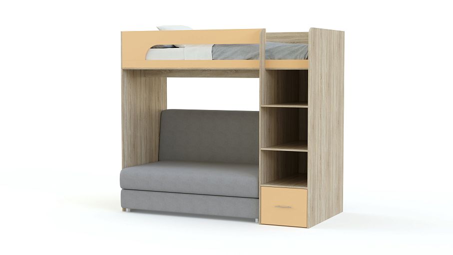 Кровать-чердак с диваном Сюрприз 24 BMS отличается компактными размерами, визуальной легкостью и станет оптимальным решением для меблировки небольшой современной детской. Двухъярусная кровать оборудована спальным местом с бортиком на верхнем ярусе, расположенным в нише раскладным диванчиком, а также лестницей-стеллажом с ящиком для игрушек в основании. Купить кровать-чердак с диваном Сюрприз 24 BMS вы сможете в нашем интернет-магазине, подобрав наиболее подходящее цветовое решение.