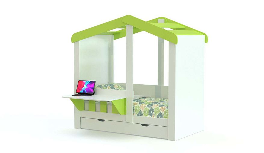 Кровать-домик Поль 11.10 BMS – это яркое интерьерное решение для современной детской. Модель необычной формы представляет собой уютный домик, на первом ярусе которого располагается просторное спальное место с защитным бортиком, имитирующим заборчик. В основании кровати располагаются два выкатных ящика для хранения постельного белья или игрушек, а на фасаде закреплен удобный для учебы, игры или творческих занятий столик. Купить кровать-домик Поль 11.10 BMS приглашаем на сайт нашего интернет-магазина.