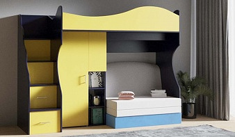 Кровать с диваном Софти 05 BMS – это многофункциональная композиция, включающая в себя двухъярусную кровать и лестницу-комод с вместительными ящиками для игрушек под ступеньками. На верхнем ярусе располагается просторное спальное место, а нижний оборудован раскладным диваном, который легко превращается в дополнительную кровать. Практичная модель может использоваться самостоятельно или комбинироваться с другими элементами. Купить кровать с диваном Софти 05 BMS, украшенную по фасаду фрезеровкой, приглашаем в наш интернет-магазин.