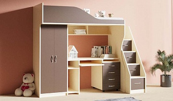 Кровать с диваном Томас 1 BMS сэкономит полезную площадь детской, объединив зону отдыха и удобную систему хранения. Двухместная модель оборудована расположенным на верхнем ярусе спальным местом с фигурным бортиком и комфортным диваном. Для книг и игрушек предусмотрены открытые встроенные полки и лестница-комод с широкими ступеньками и вместительными ящиками. Купить кровать с диваном Томас 1 BMS, выполненную в контрастных древесных тонах, приглашаем в наш интернет-магазин.