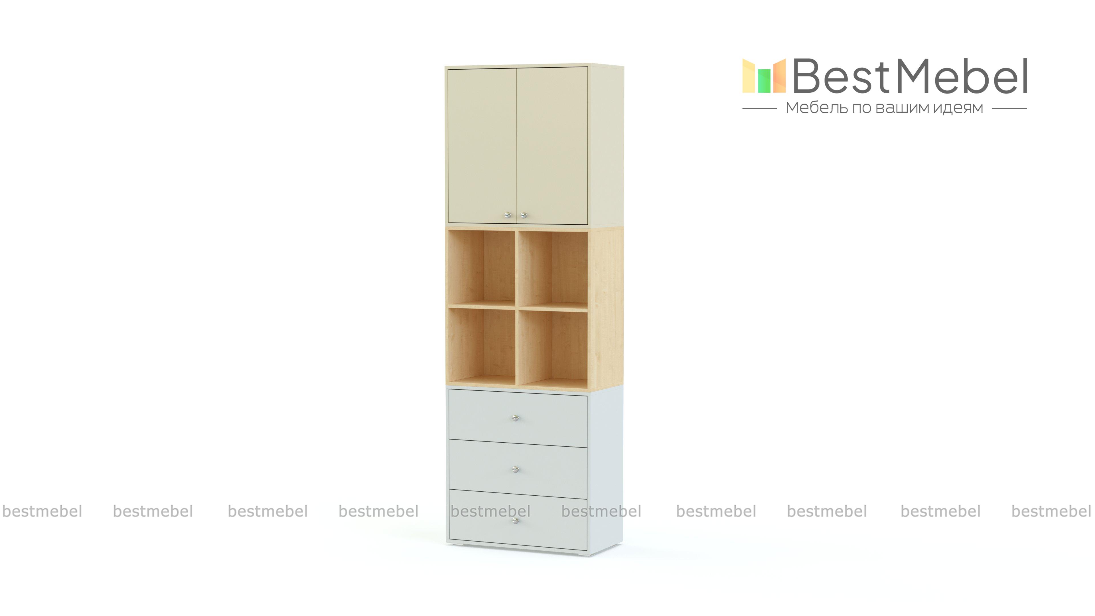 Шкаф Астра 13 BMS визуально разделен на три функциональных модуля. В нижней части располагаются три широких выдвижных ящика, средняя представляет собой открытый стеллаж, а верхняя – распашной шкафчик с полками. Благодаря разнообразию отделений вы сможете компактно разместить книги, игрушки, принадлежности для школы и спорта, декоративные мелочи. Купить шкаф Астра 13 BMS, выполненный в сочетании нейтрально-серого, древесного и белого, приглашаем недорого в наш интернет-магазин.