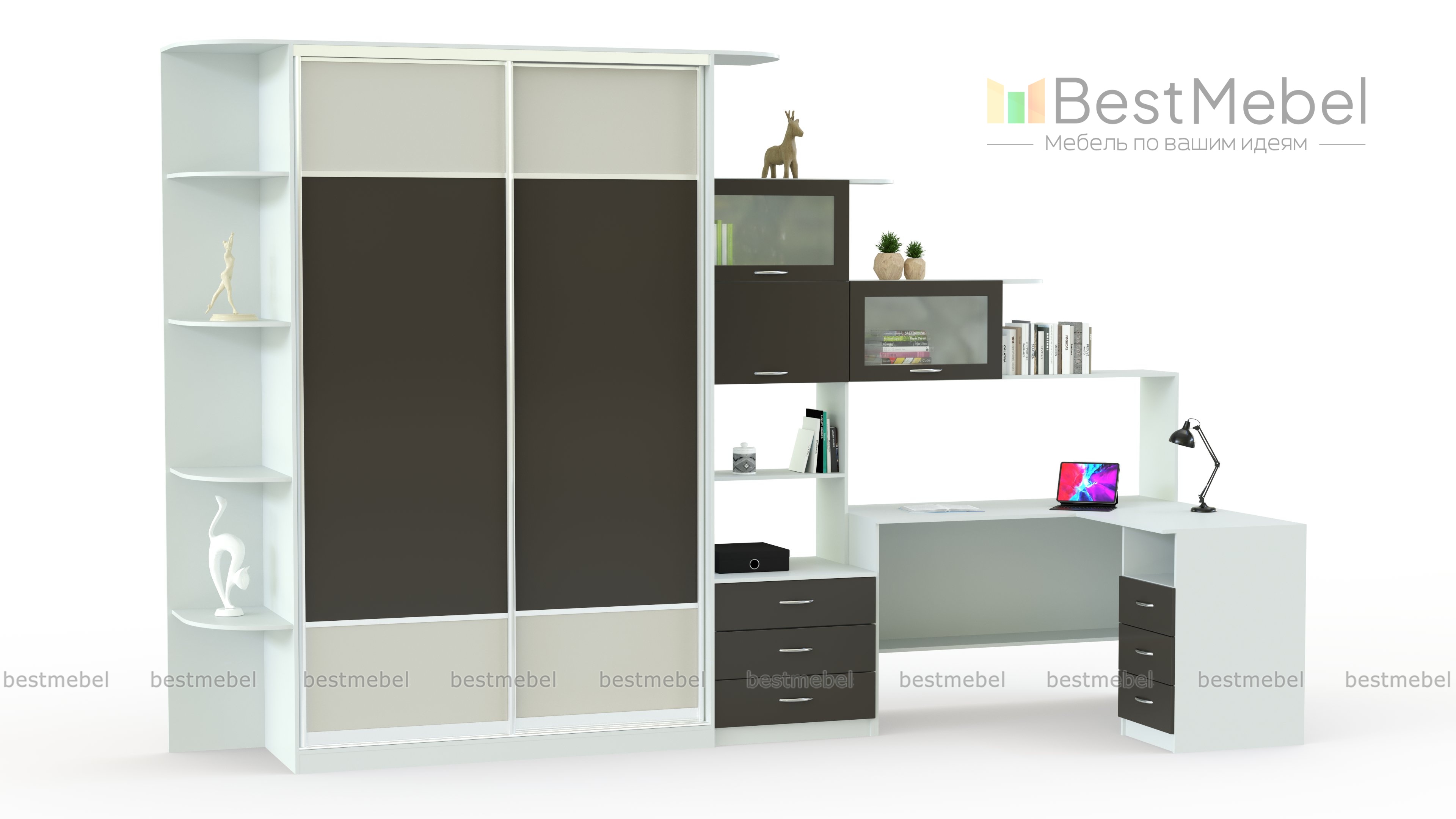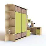 Шкаф-купе с угловым столом Лайм BMS станет отличным выбором для создания яркого, креативного интерьера. Эффектный и функциональный, комплект включает в себя двухдверный шкаф-купе для одежды, торцевой стеллаж, комбинированную секцию с ящиками и нишами и компьютерный стол, дополненный тумбой и надстройкой. Фасады контрастного оттенка декорированы светлыми вставками. Купить шкаф-купе с угловым столом Лайм BMS для уютной молодежной комнаты приглашаем в наш интернет-магазин.