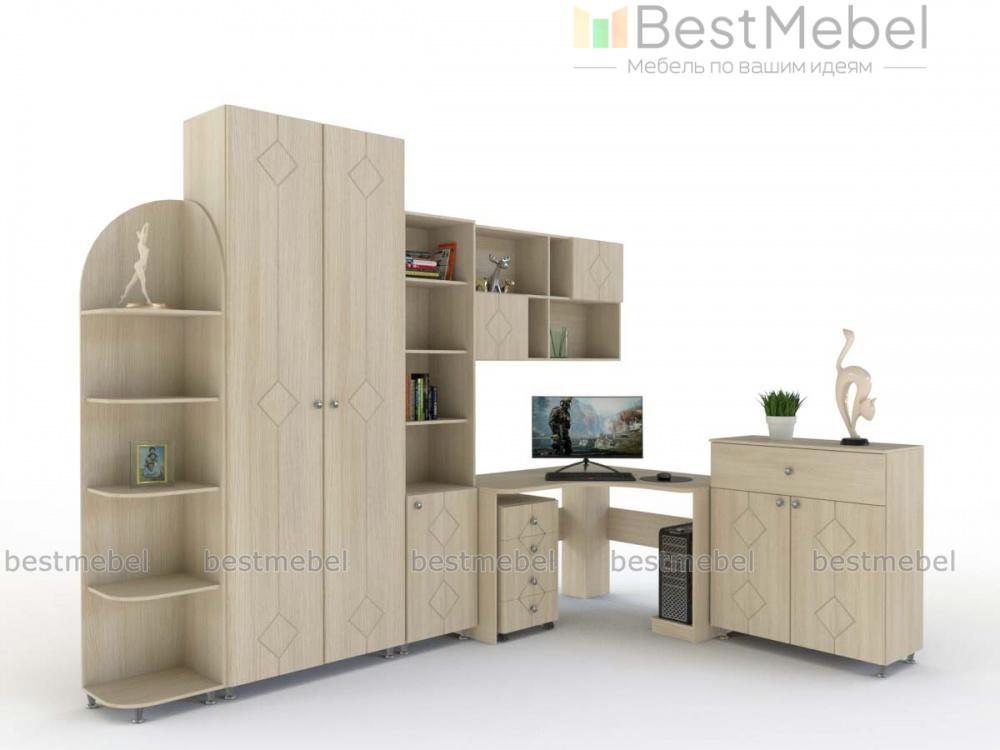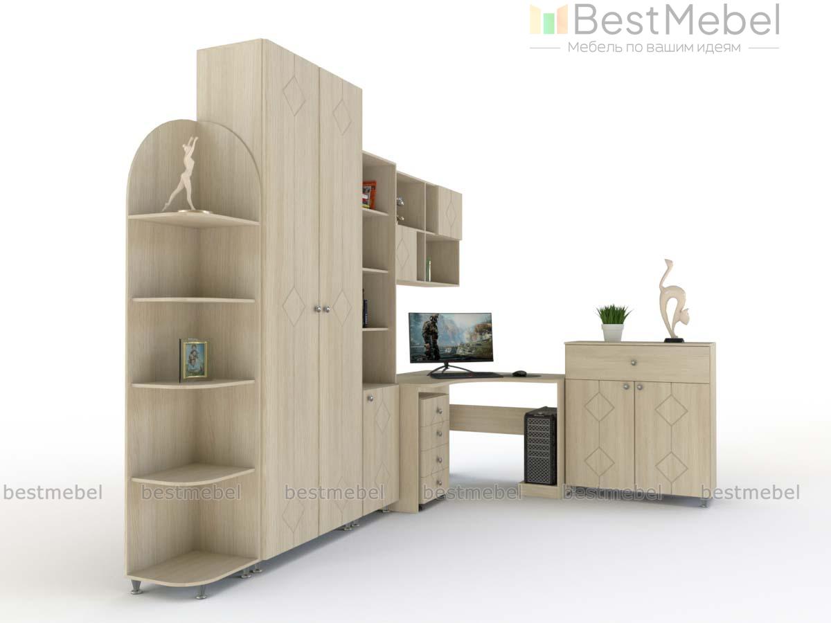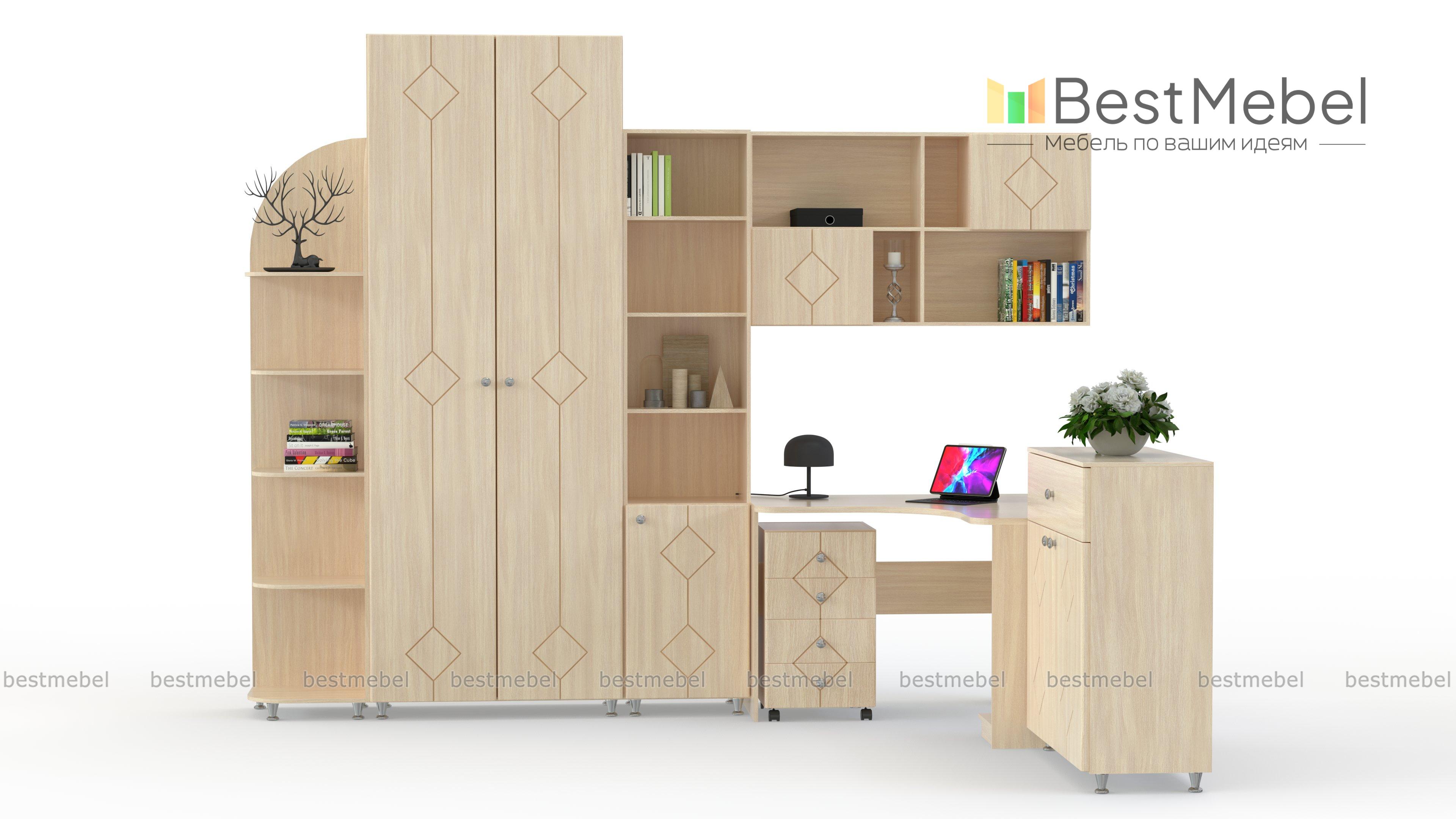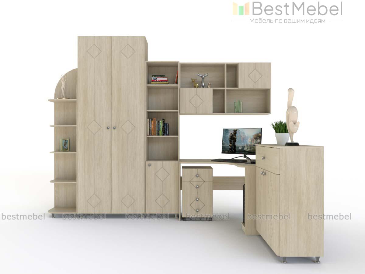 Шкаф со столом Логика BMS поможет оборудовать комнату школьника всем необходимым для успешной учебы и хранения вещей. Модульная система включает в себя угловой компьютерный стол с подставкой для системного блока, выкатную тумбу, навесную книжную полку, комбинированный комод, распашной платяной шкаф и стеллажи. Все предметы располагаются на устойчивых хромированных опорах, фасады спокойных древесных тонов декорированы фрезерованным рисунком. Купить шкаф со столом Логика BMS по выгодной цене приглашаем к нам в интернет-магазин.