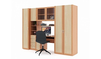 Стенка-шкаф с компьютерным столом Лето BMS сделает уютным и функциональным интерьер детской комнаты. Среди преимуществ модели – оригинальный дизайн, надежность и эргономичность. Угловая композиция включает в себя компьютерный стол с тумбой и нишей под системный блок, вместительную навесную полку, распашной шкаф для одежды с фигурно вырезанными дверцами и симметрично расположенные, безопасно скругленные торцевые стеллажи. Теплые древесные тона красиво сочетаются с пастельно-зелеными фасадами. Купить стенку-шкаф с компьютерным столом Лето BMS приглашаем к нам в интернет-магазин.