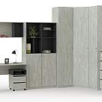 Стол с угловым шкафом Мартин BMS – это модульная композиция в современном стиле, которая поможет сделать интерьер максимально функциональным. В комплекте объединены компьютерный стол с выкатной тумбой, навесная полка, книжный шкаф с распашным отделением в основании, шкафы для белья и одежды и вместительный комод с четырьмя выдвижными ящиками. Поверхности светлых древесных тонов с выделенными яркими элементами отлично подчеркнут модный минимализм модели. Купить стол с угловым шкафом Мартин BMS приглашаем в наш интернет-магазин.