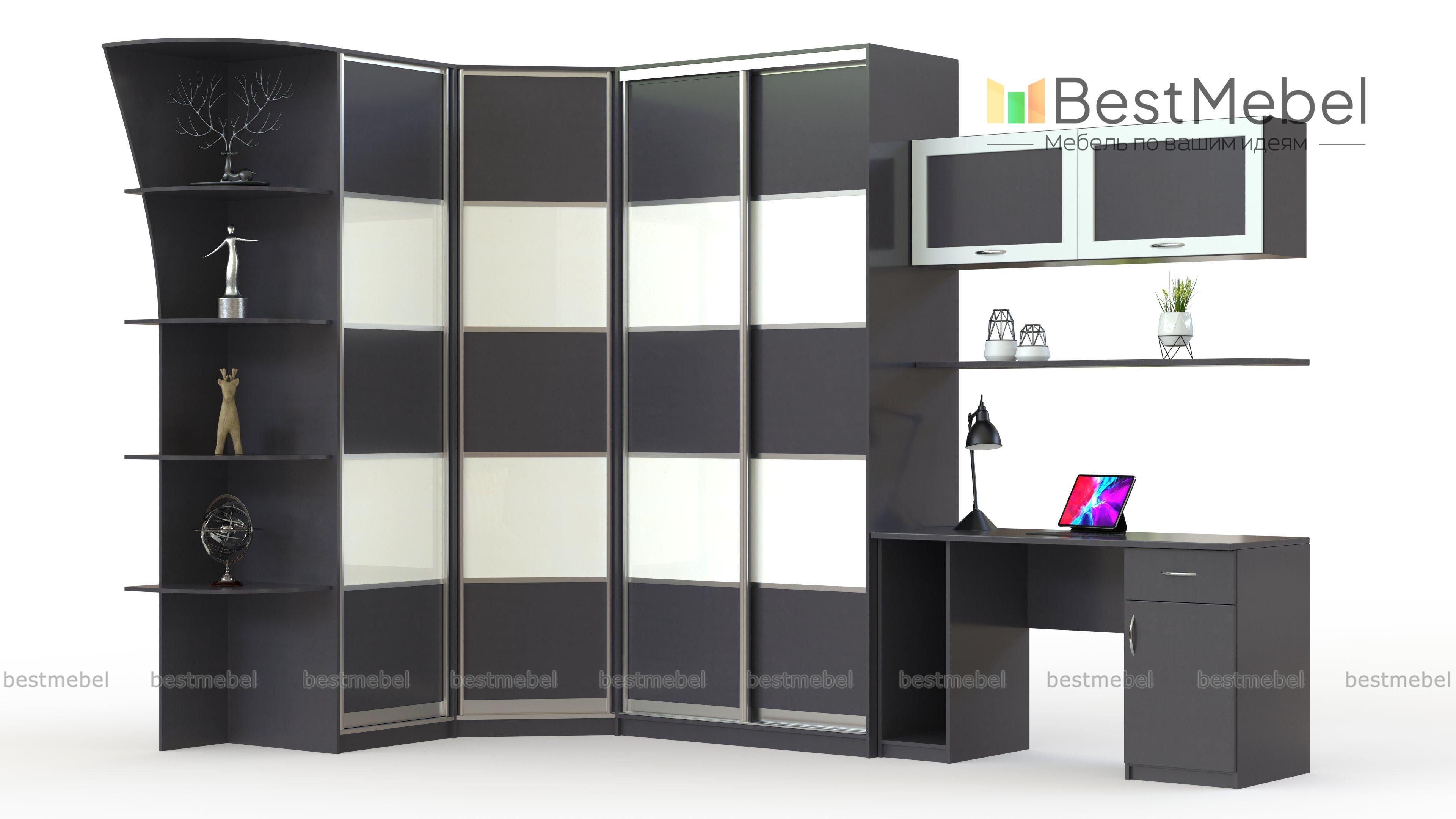 Угловой гардероб со столом Алиса 01 BMS поможет без труда поддерживать порядок и оборудовать комфортное рабочее место даже в небольшой комнате. Стильная композиция, выполненная в сочетании теплых древесных тонов и белого, состоит из угловой шкафной группы, элегантного торцевого стеллажа, компьютерного стола с тумбой и нишей под системный блок и навесных полок для книг и канцелярских принадлежностей. Купить угловой гардероб со столом Алиса 01 BMS для молодежной комнаты приглашаем в наш интернет-магазин.